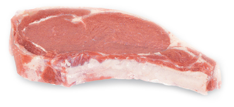This is typically a thick-cut chop that comes with the rib bone that is Frenched, meaning the meat is trimmed from the bone for a more formal presentation. As a thick-cut chop, this is much like a beef tomahawk steak.